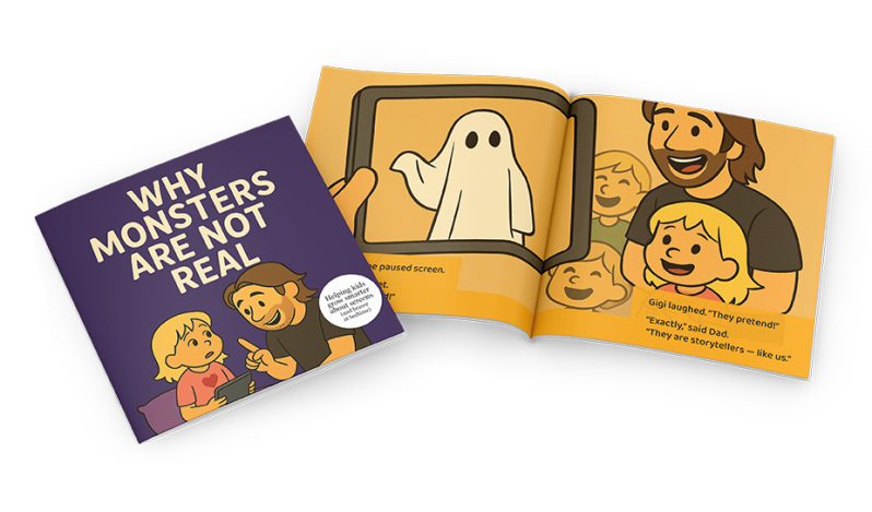 A funny, comforting story about bedtime fears, screen time, wild imaginations, and the ordinary truth hiding behind those so-called “monsters.”